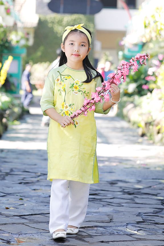 ÁO DÀI BÉ GÁI THÊU CÀNH HOA